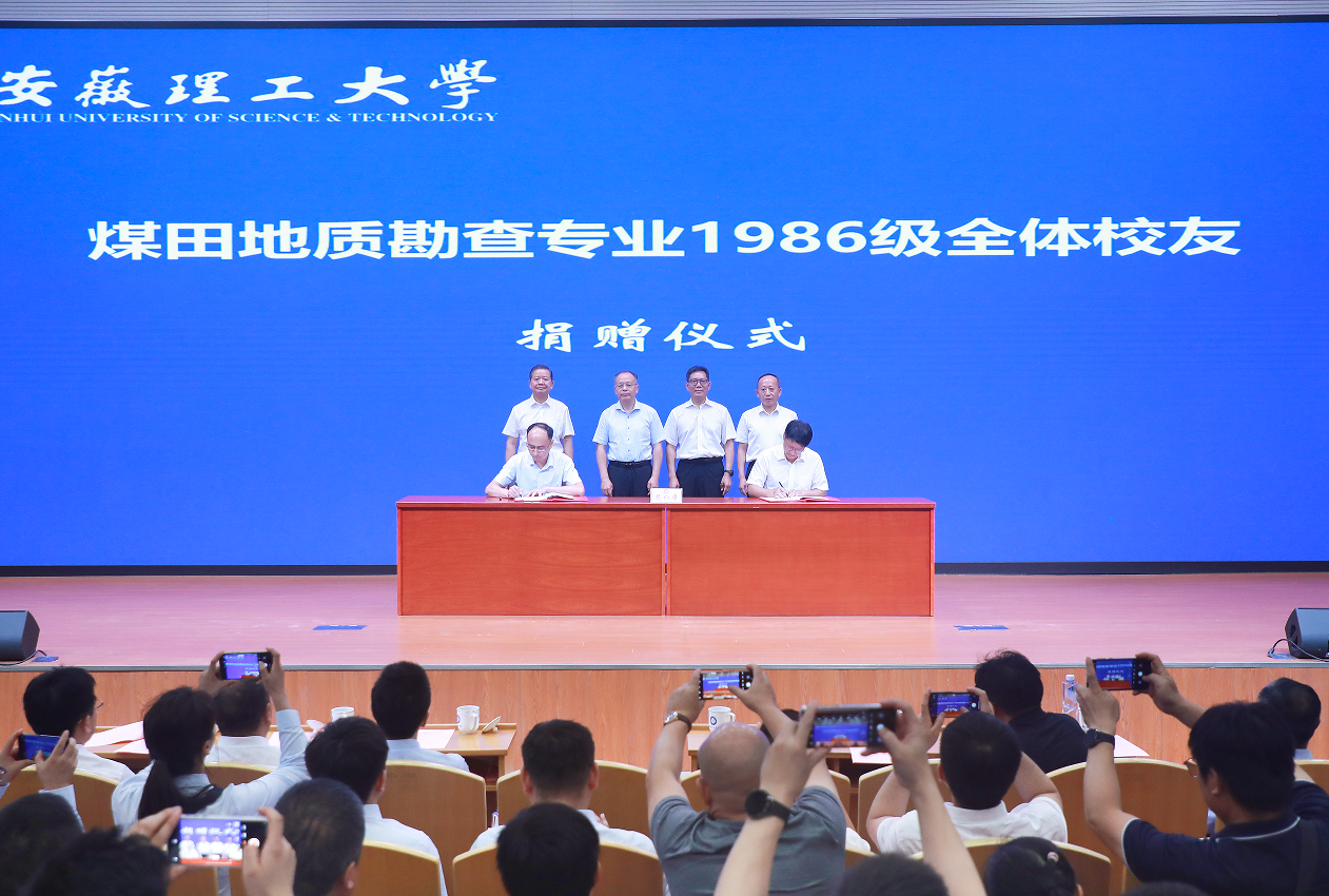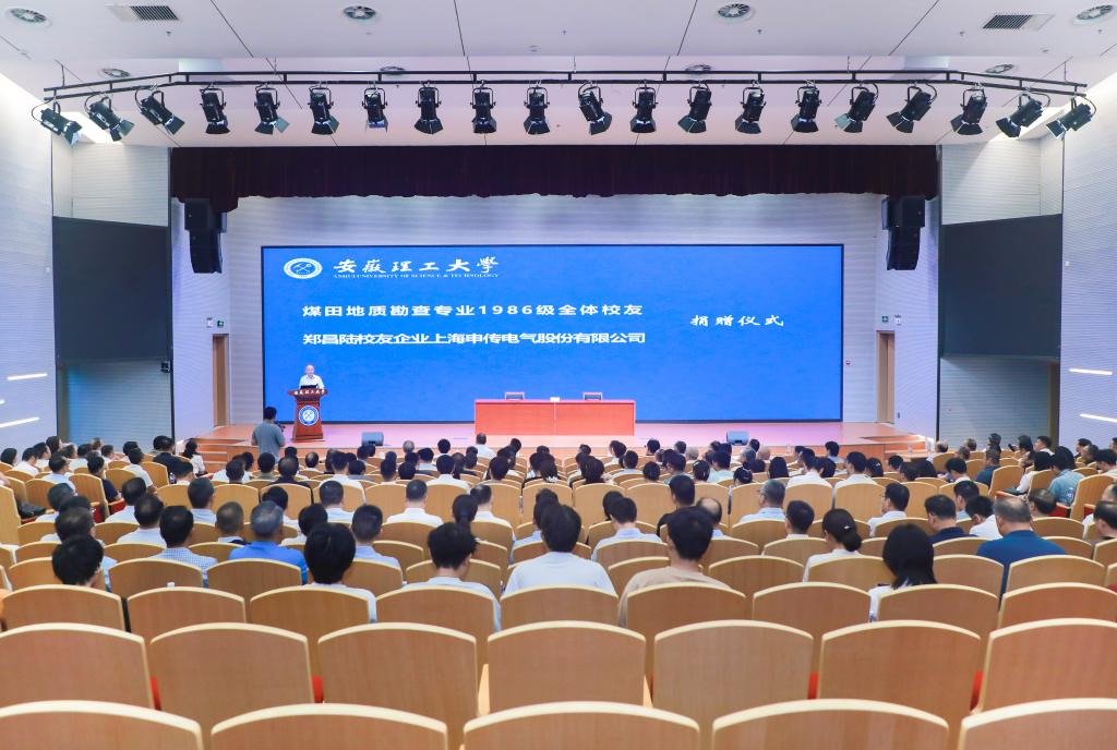 至此,捐赠仪式落下帷幕,也为建校八十周年校庆捐赠活动拉开重要序幕。两笔千万元校友捐赠,两种模式、同份赤诚。校友企业上海申传电气股份有限公司践行“工业报国”初心,厚植校企情谊;地质86级全体校友满载同窗与母校共进之深情。相信这份担当,必将感召更多“安理人”,为学校“双一流”创建汇聚磅礴动能,让八十华诞的安徽理工大学在代代奉献中绽放更加璀璨的光芒。