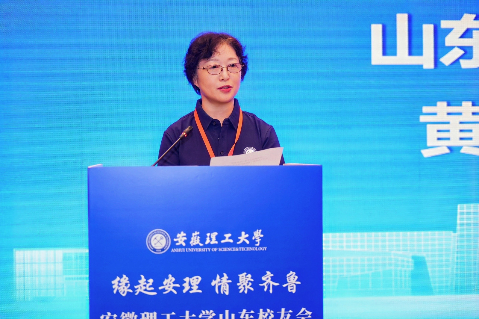 黄琦致辞。她深情回顾了在母校学习生活的感悟,向母校多年来的培养表示衷心感谢!作为安理校友、为学校的高质量发展感到骄傲和自豪!她呼吁山东校友携手并肩,以山东校友会成立为新起点,为谱写中国式现代化山东篇章、为母校“双一流”创建续写安理人新的荣光。