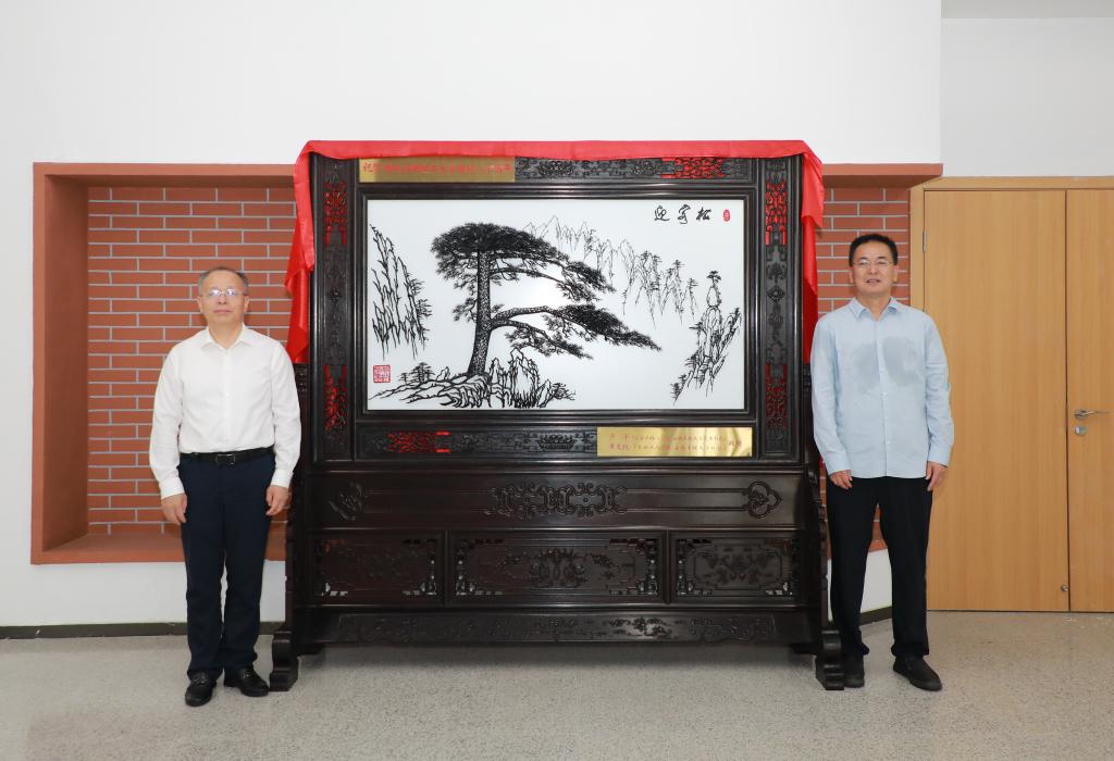9月28日下午,安全工程83级校友、安徽工程大学党委书记卢平,自动化90级校友、安徽工程大学校长黄友锐向母校捐赠铁画《迎客松》,为即将到来的建校80周年献上深情祝福。校党委书记郭永存,党委副书记、校长袁亮院士在党委楼亲切会见黄友锐校友。