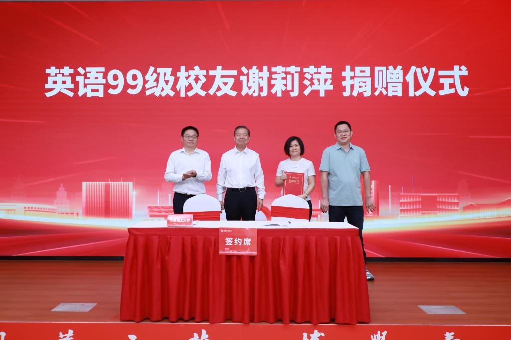 余玉刚与谢莉萍校友、黄时进校友签订捐赠协议。