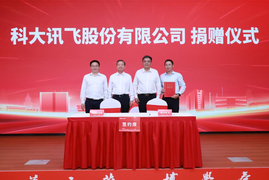 在袁亮、科大讯飞高级副总裁张友国共同见证下,余玉刚与科大讯飞安徽大区执行总经理徐军签订捐赠协议。