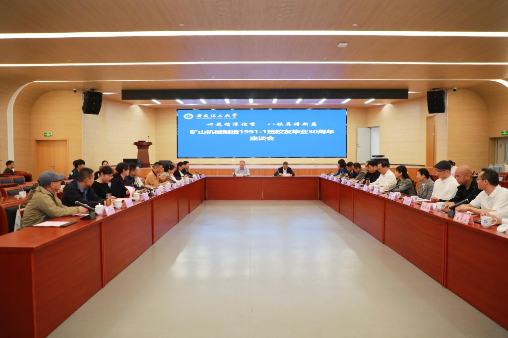 金秋送爽,丹桂飘香。在充满丰收与喜悦、举国同庆的美好时节,在母校80周年华诞之际,10月3日上午,矿山机械制造1991-1班校友座谈会在学校党委办公室一楼报告厅举行。校党委书记郭永存,党委副书记、校长袁亮院士出席座谈会。