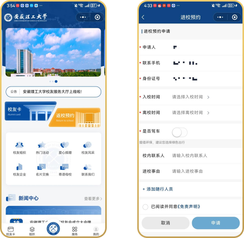 返校预约申请
