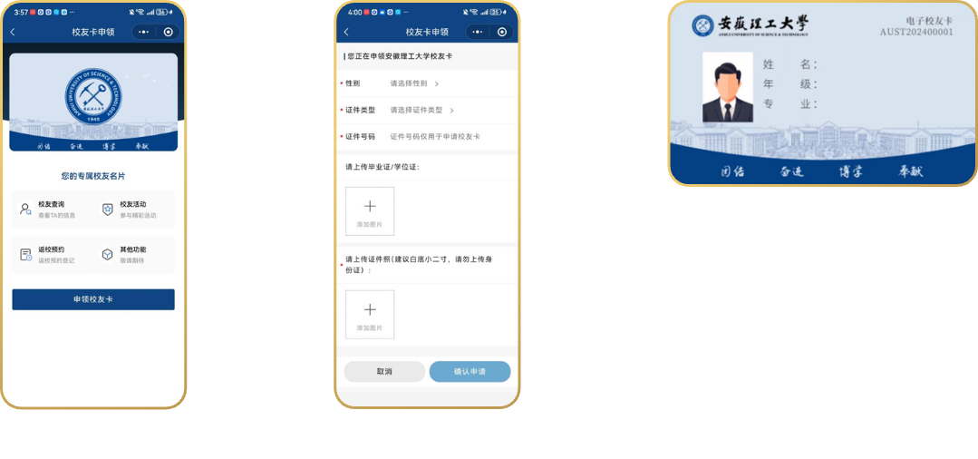 平台入口: 微信小程序搜索 “安徽理工大学校友服务大厅”